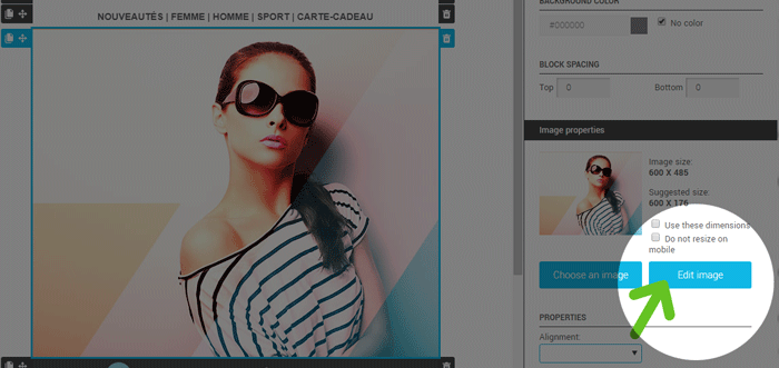 3. In the side panel on the right of the template builder, go to the “Image properties” section.
