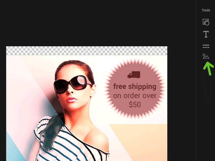 • upload a new image directly into your composition (accepted formats: JPG, PNG, GIF, SVG).