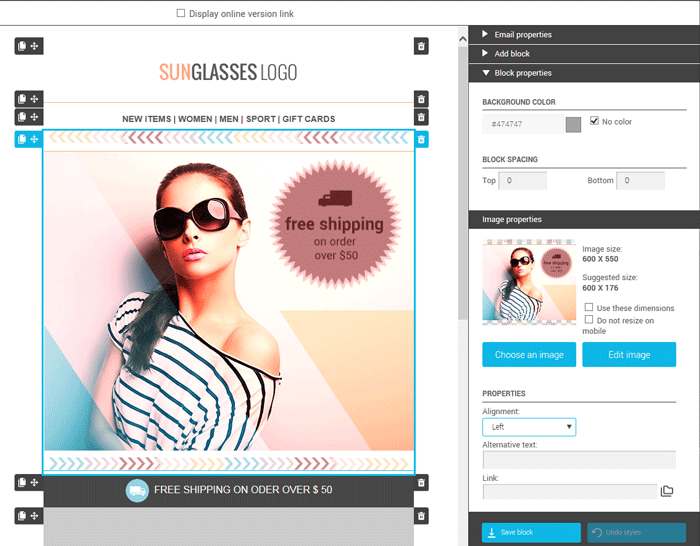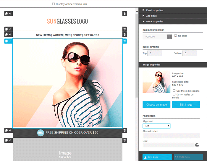 When you have multiple images of different sizes displayed on the same row or column, it can create an imbalance in the visual of your email. To go for a more uniform look, you can crop them using the same ratio. This will save you the headache of having to calculate the size so that they will have the same proportions.