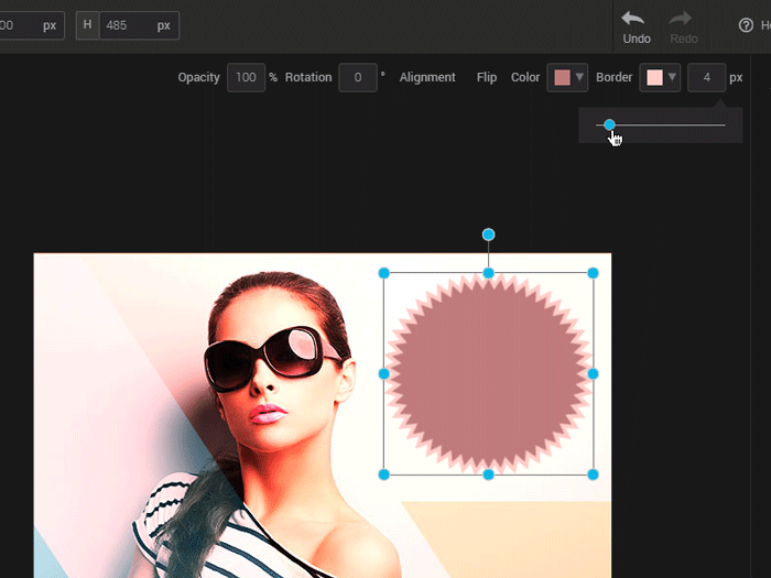 To change the size of the border, either enter a pixel value or slide the cursor.