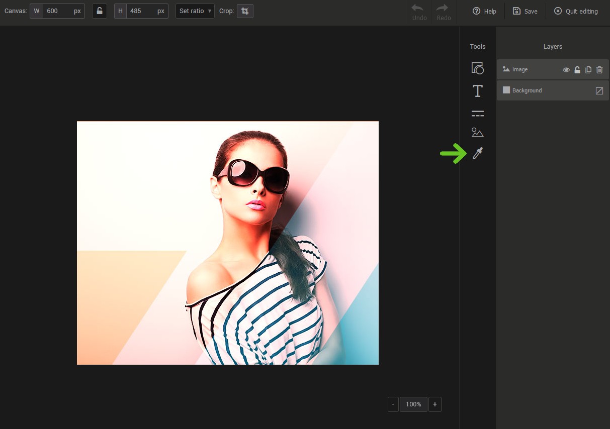 Color picker: allows you to find and copy the color code of a specific element in your image to harmonize your layout.