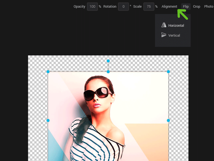 You can also flip an image horizontally or vertically by clicking the “Flip” option and choosing the appropriate option.