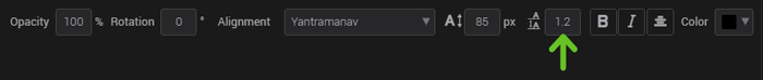 Enter a whole number ( 1,2…) or a decimal (1.5) in the appropriate field to control the spacing between the lines. Note that this option will only be visible if your text has more than one line.