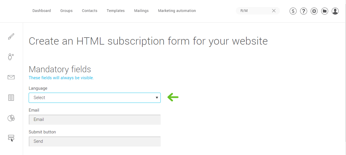 To create an HTML form, go in the Subscription forms section.