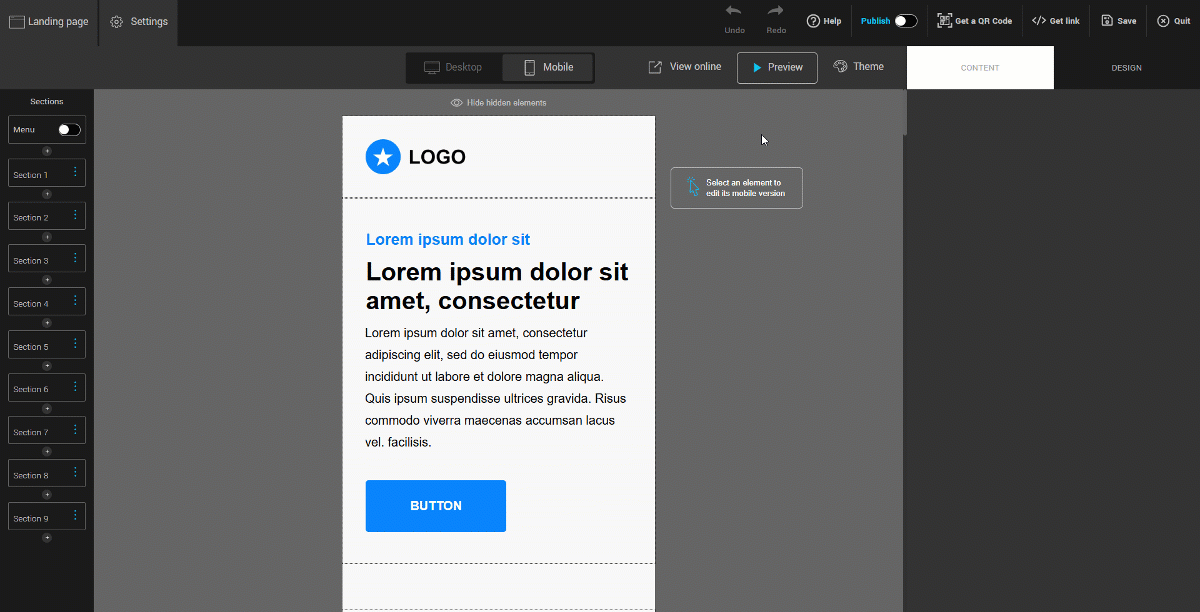 Edit the mobile version of your page
