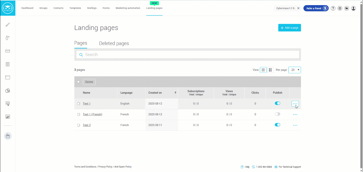 a) Go to the Landing pages menu.