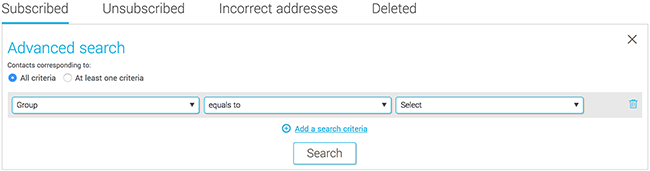 6. Click "Search". The list of contacts of the group will appear under the search result.