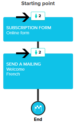 When a contact has gone through a step more than once, the total number of journeys will be indicated at the right-hand side of his email address.