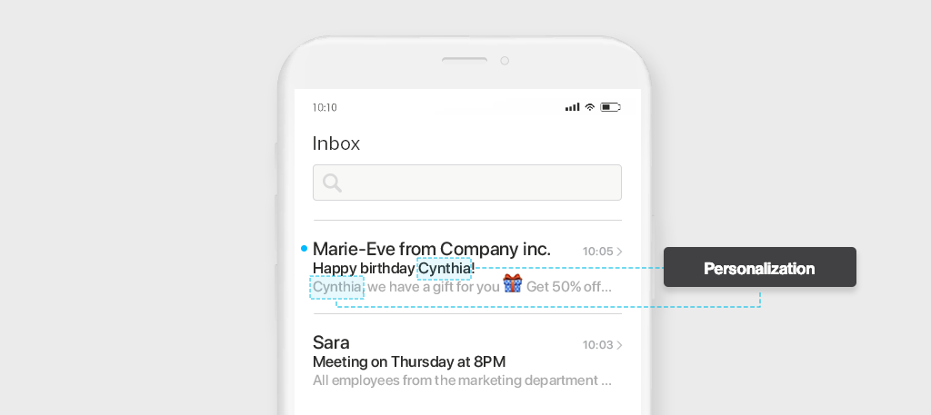One of the most common example of email personalization circulating is to add the name of your subscribers in your messages, but as you'll see in this article, there is an infinite number of possibilities when it comes to customization. The information saved in the regular and custom fields can be added directly in the body of your emails as well as in the subject and preview text. Personalization can also be used to insert different images and unique links.