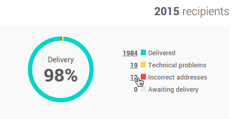 - Click on the number of incorrect addresses in the Mailing performances section to access the list of incorrect addresses.