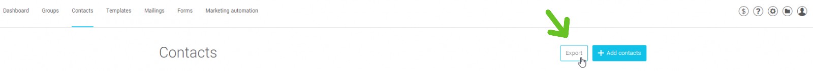 - Open the drop-down list under Export to select the type of contacts you wish to export. Here are the different type of contacts you can choose from: Grouped contacts, Ungrouped contacts, Unsubscribed contacts and Incorrect email addresses.