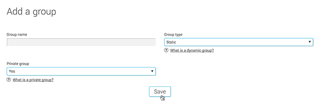 3. Select the group type (static or dynamic) and choose if your group should be private or not (if you choose this last option, your group will be public). If you are not certain what type to choose, we suggest leaving it as a "private" group (you will find below more information about public and private groups).