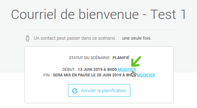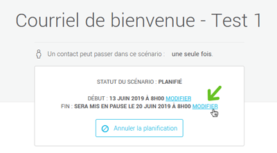 - Cliquez sur le bouton "Annuler la planification" et faites "Oui" pour confirmer. Le scénario redeviendra alors en mode construction.
