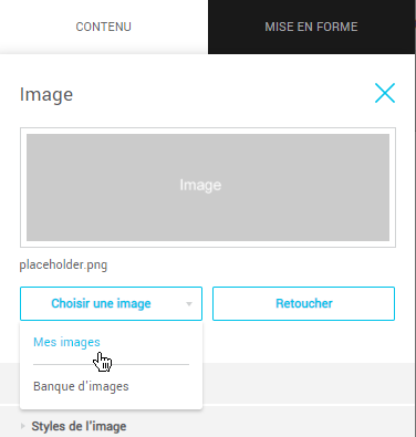 3. Cliquez sur le bouton Choisir une image pour sélectionner une image. Pour utiliser une de vos images existantes ou en ajouter une nouvelle, choisissez Mes images. Sinon, trouvez l'image qui vous convient en parcourant les vastes choix disponibles dans notre Banque d'images libres de droits.