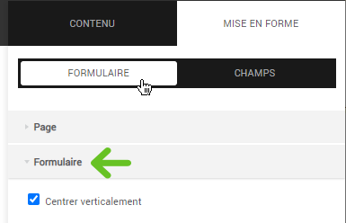 2. Cliquez sur le panneau Formulaire pour le développer et voir les options disponibles.