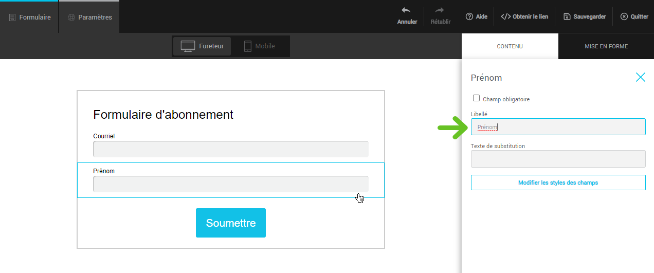 6. Au besoin, modifiez le libellé de vos champs et/ou ajoutez-leur un texte de substitution