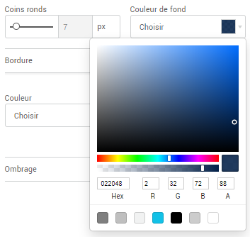 3. Changez la couleur de fond du formulaire via le sélecteur de couleur sous l'option du même nom. Cliquez avec le curseur dans les différentes nuances de couleur pour en sélectionner une ou entrez directement un code hexadécimal ou RGB.