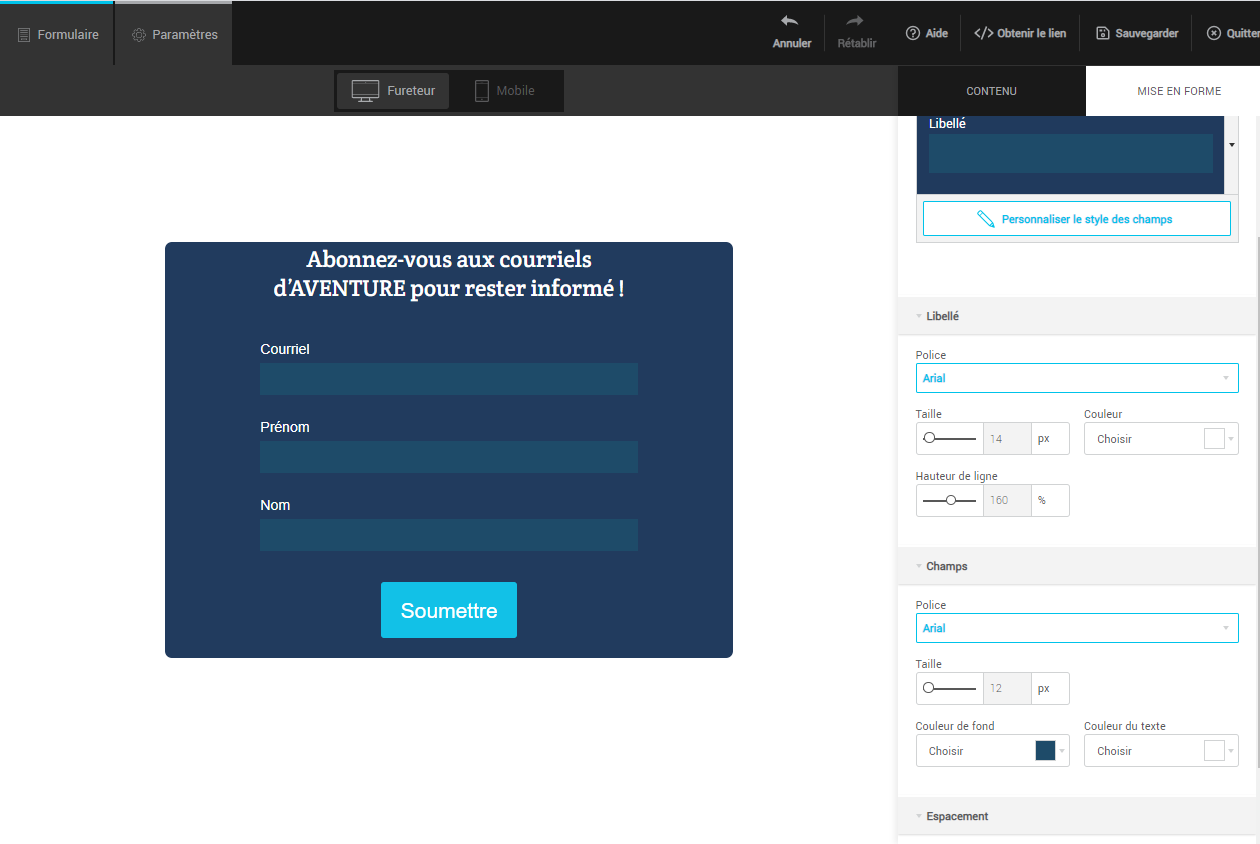 9. Personnalisez le style de vos champs (ex.: leur apparence ainsi que la couleur, la police et la taille du texte des champs et des libellés).