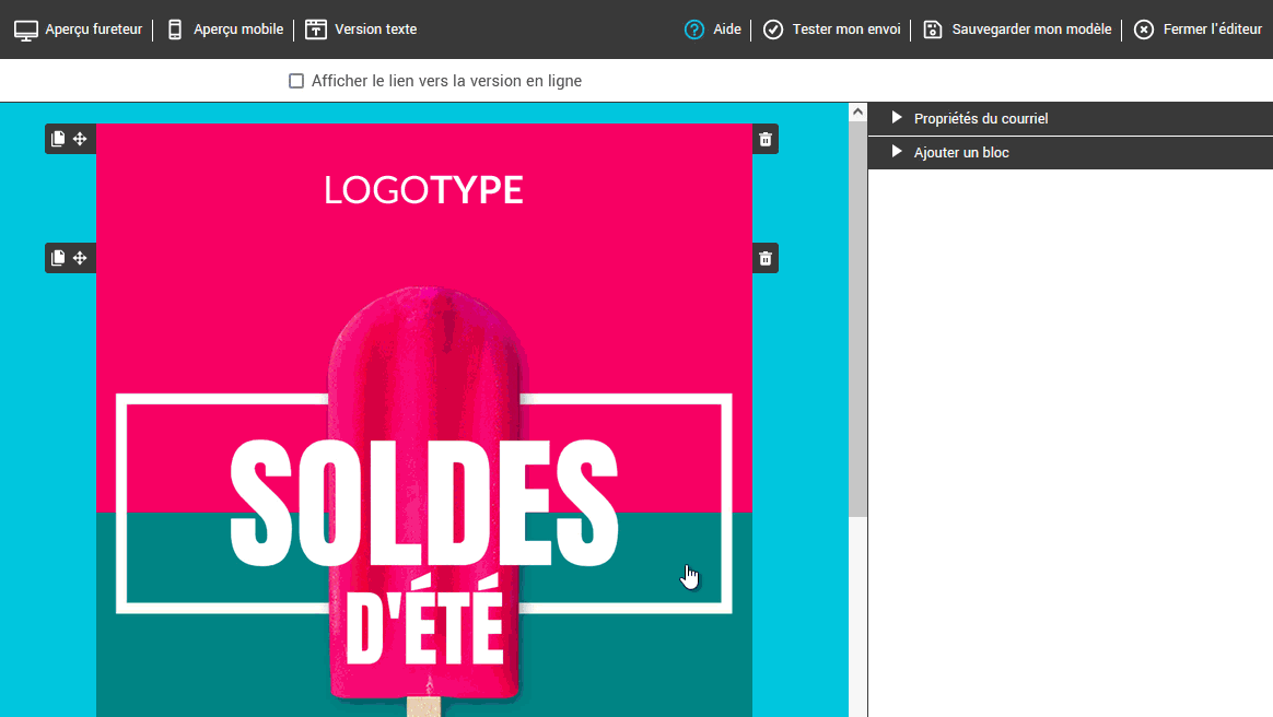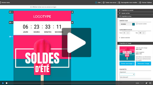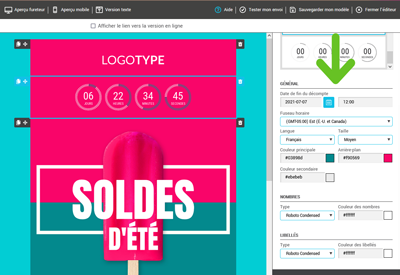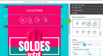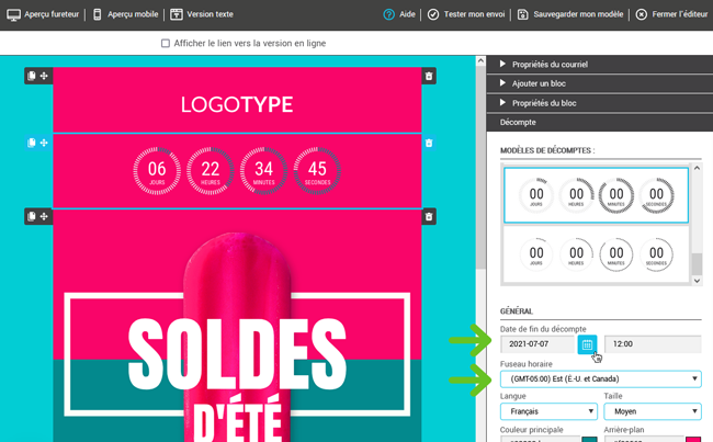 Les blocs de décomptes peuvent être ajoutés dans n’importe quel modèle fait à partir de l’éditeur de courriels des modèles prédessinés et de base.