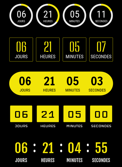 Nos blocs de décompte vous offrent de multiples possibilités de personnalisation. En effet, vous pouvez choisir parmi plusieurs styles de modèles de décomptes et personnaliser leurs couleurs, leur taille ainsi que la police des textes et des chiffres. Alors, soyez créatifs! Vos décomptes ne passeront pas inaperçus.