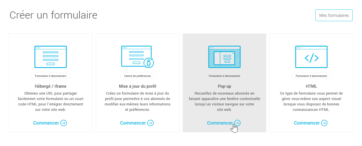 Créer un formulaire d'abonnement pop-up