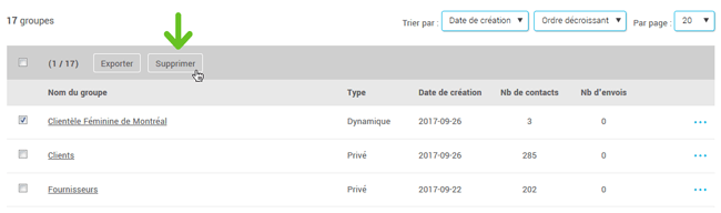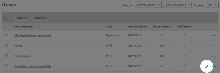 Lorsque vous associez un groupe à un formulaire d'abonnement ou à un groupe dynamique, il ne sera plus possible de le supprimer. Pour supprimer ce groupe, vous devrez d'abord modifier le groupe relié à votre formulaire ou modifier les critères de votre groupe dynamique.