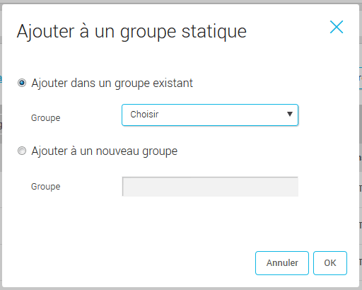 3. Une deuxième fenêtre s’ouvrira. Si vous désirez les ajouter à un groupe déjà existant, sélectionnez "Ajouter dans un groupe existant" et choisissez le groupe dans la liste déroulante. Sinon, sélectionnez "Ajouter à un nouveau groupe" et entrez le nom du nouveau groupe.