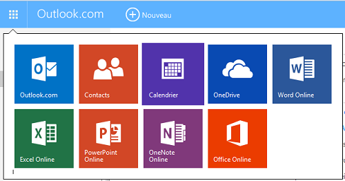 2. Cliquez sur l'icône des carrés en haut à gauche du titre "Outlook.com".