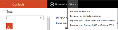 4. Cliquez sur l'onglet "Gérer" et choisissez "Exporter pour Outlook.com et d'autres services".