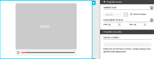 Note : Les blocs vidéo ne sont pas disponibles dans les modèles issus du mode Code HTML .